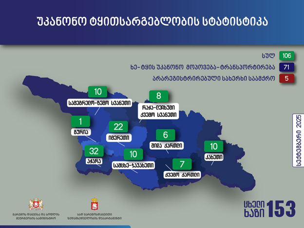 სამინისტროს მიერ გავრცელებული ინფორმაციით, საქართველოს მასშტაბით, ჯამში, უკანონო ტყითსარგებლობის 106 ფაქტი გამოავლინეს. მათ შორის, 71 ხე-ტყის უკანონო მოპოვება-ტრანსპორტირებას ეხება, 35 კი სახერხი საამქროების მიერ ტექნიკური რეგლამენტის დარღვევის და უკანონო სახერხი საამქროების ფაქტებია. სამართალდარღვევებიდან 13 ფაქტი სისხლის სამართლის დანაშაულის ნიშნებს შეიცავს და მასალები, შემდგომი რეაგირების მიზნით, შესაბამის უწყებებში გადაიგზავნა.
