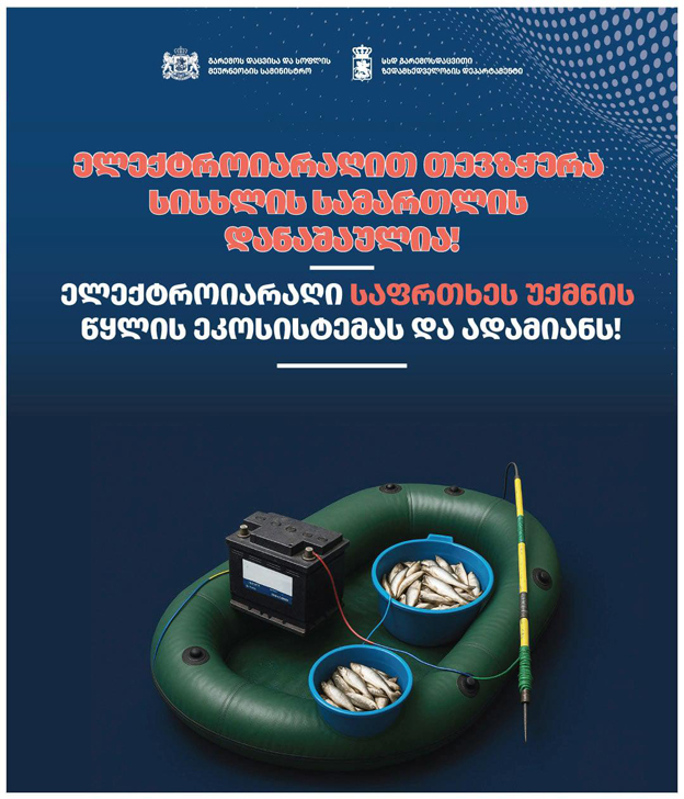 ელექტროიარაღით თევზჭერა სისხლის სამართლის დანაშაულია - გარემოსდაცვითი ზედამხედველობის დეპარტამენტი მოქალაქეებს მოუწოდებს დაცვან კანონი და არ გამოიყენონ თევზჭერის აკრძალული საშუალებები.