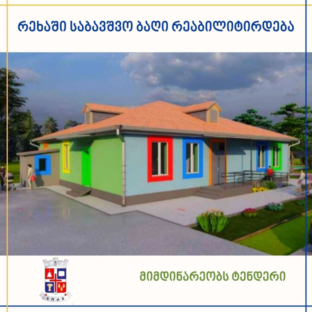გორის მუნიციპალიტეტის სოფელ რეხის საბავშვო ბაღის შენობას რეაბილიტაცია ჩაუტარდება. სამუშაოების შესყიდვის მიზნით, გორის მერიამ ტენდერი უკვე გამოაცხადა.