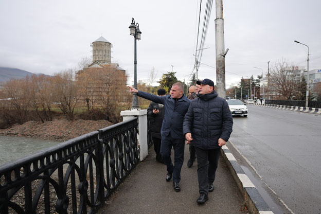 გორში, მდინარე ლიახვის ნაპირსამაგრი სამუშაოები მიმდინარეობს.