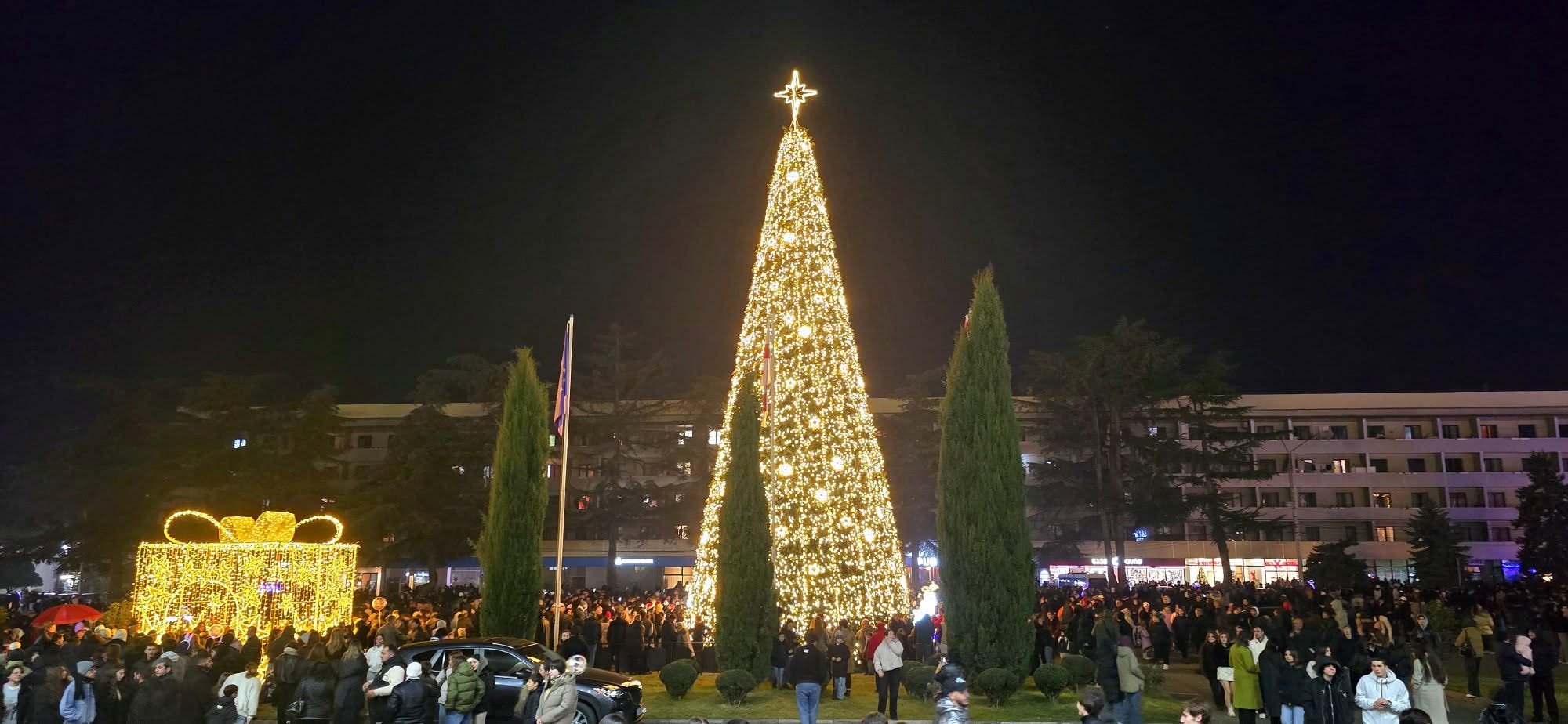 ქალაქის ცენტრალურ მოედანზე მთავარი ნაძვის ხე საზეიმოდ აინთო.