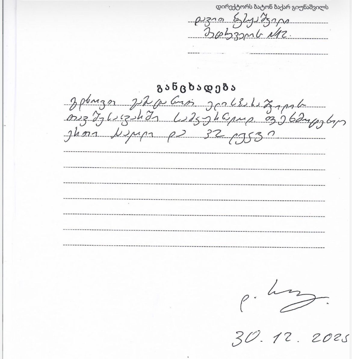 - 2025 წლის 30 დეკემბერს სააგენტოს განცხადებით მიმართა დ.ბ.-მ. ის, თამაზ ელიზბარაშვილის კერძო თავშესაფარში სამკურნალოდ გადასაყვანად ითხოვდა 1 ფეხმოტეხილი ძაღლის და 32 ლეკვის ჩუქებას;